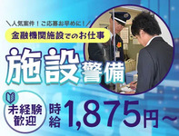 【金融機関施設の警備STAFF】時給1,875円!1時間で終わっても日収6,000円保証◎